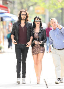 Katy Perry out and about in New York City walking with a guy with hand in hand also showing her sexy legs wearing black jacket in Sun light looking very awesome